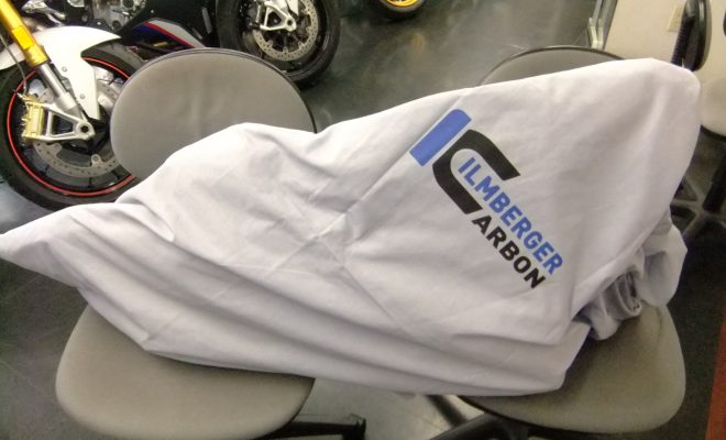 ILMBERGER(イルムバーガー)のパーツが入荷しました。 布製の袋に入った大きなパーツ。。。 中身は、カーボンアンダーカウル NEW S1000RR用です!! ちなみに、エキゾーストパイプのチャンバー部…